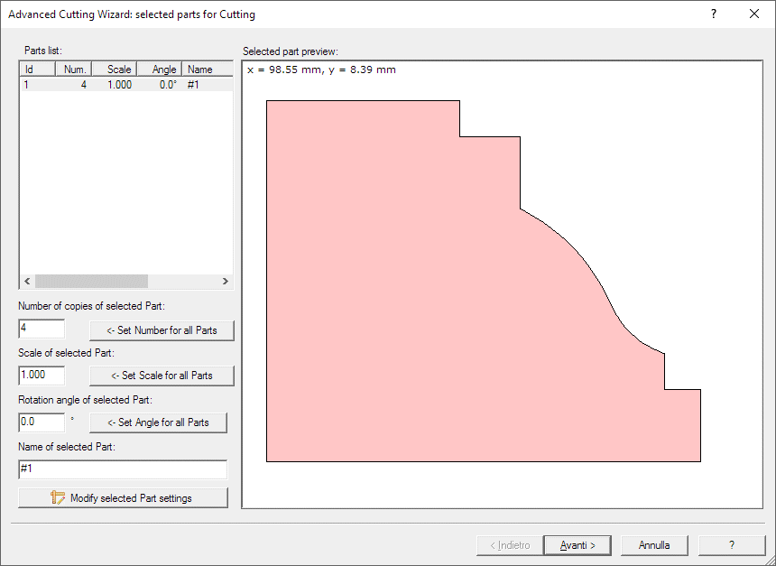 Using this feature you can Cut many letters or not Tapered parts, modifying for each of them the number of parts to cut, the Scale, the orientation angle and the name. You apply then the Nesting operation to place them in one or more foam blocks. Finally you create the Cutting path for each block and you export it.